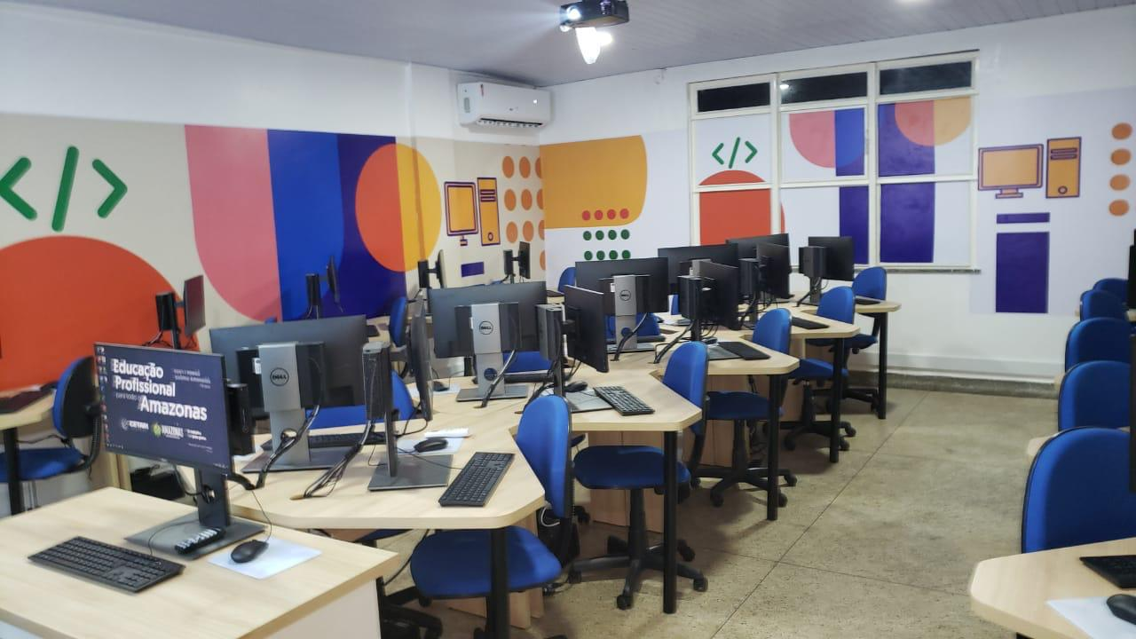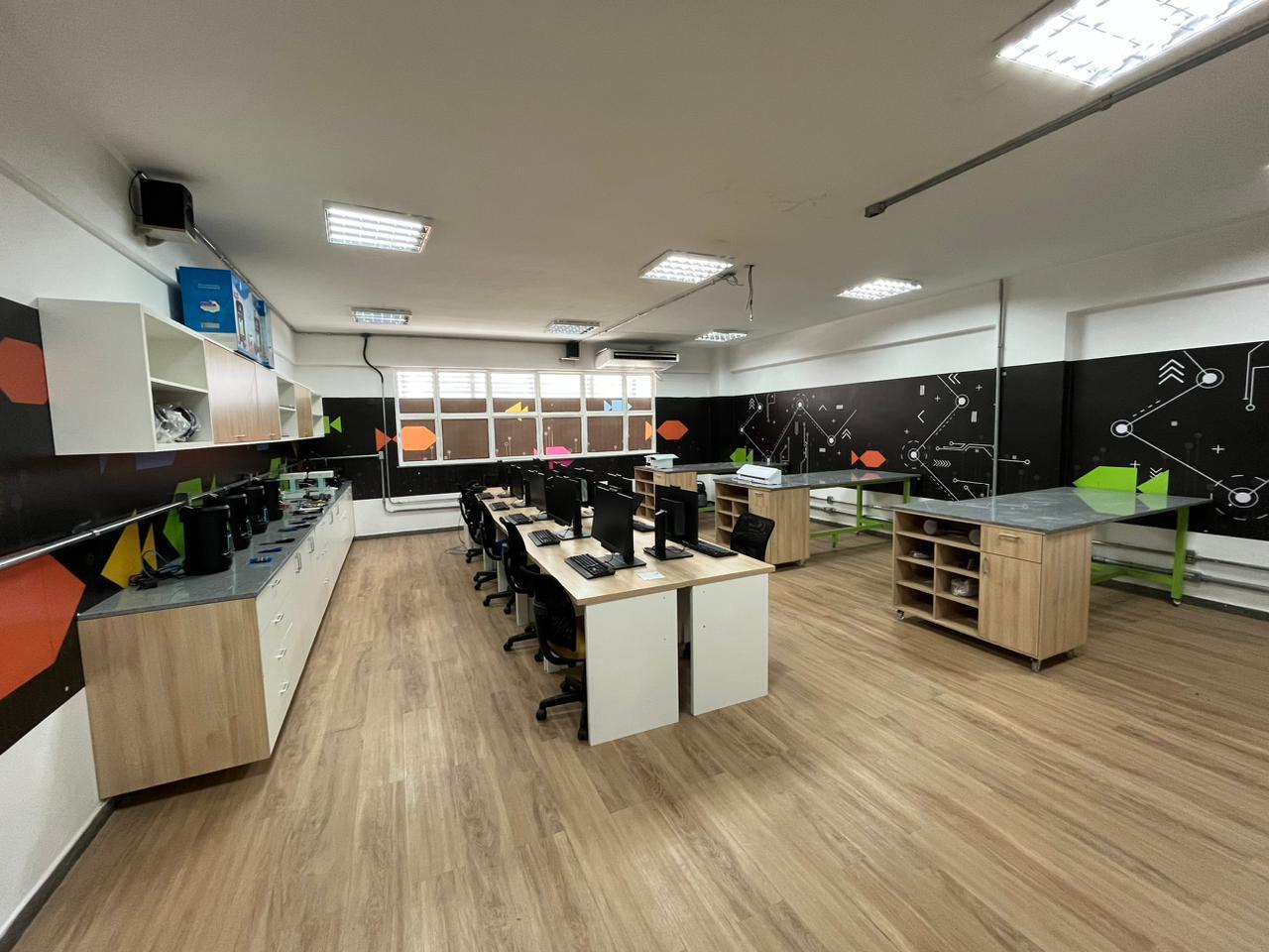 Ambiente moderno com estações completas.